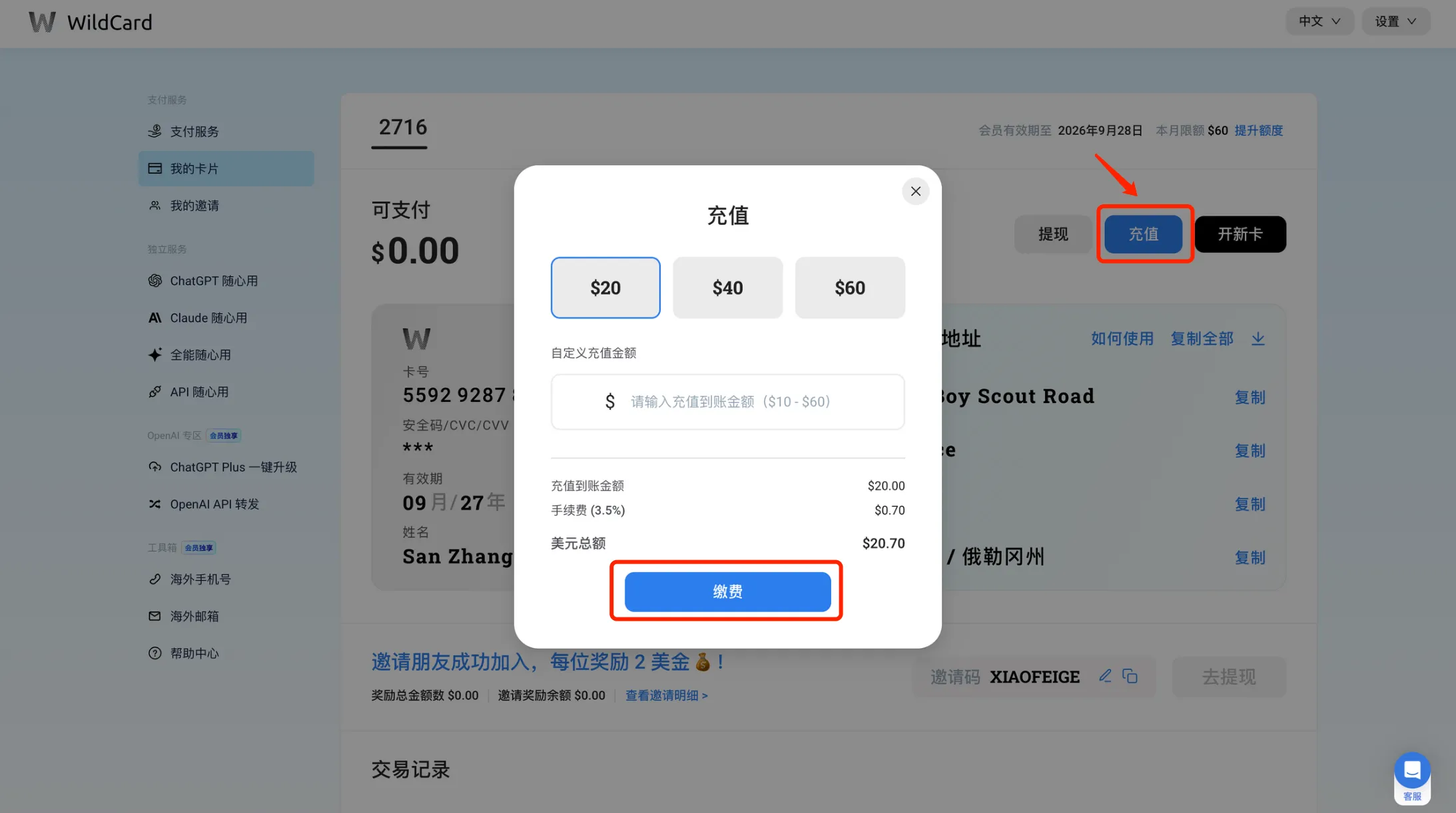 市面上大部分虚拟卡都支持通过USDT充值,但对于没有虚拟货币的小伙伴,选择支持支付宝或微信充值的虚拟卡将更为方便。野卡正是这样一款卡片,它支持支付宝和微信充值,能将充值金额直接转换为美元,适合广大用户使用。