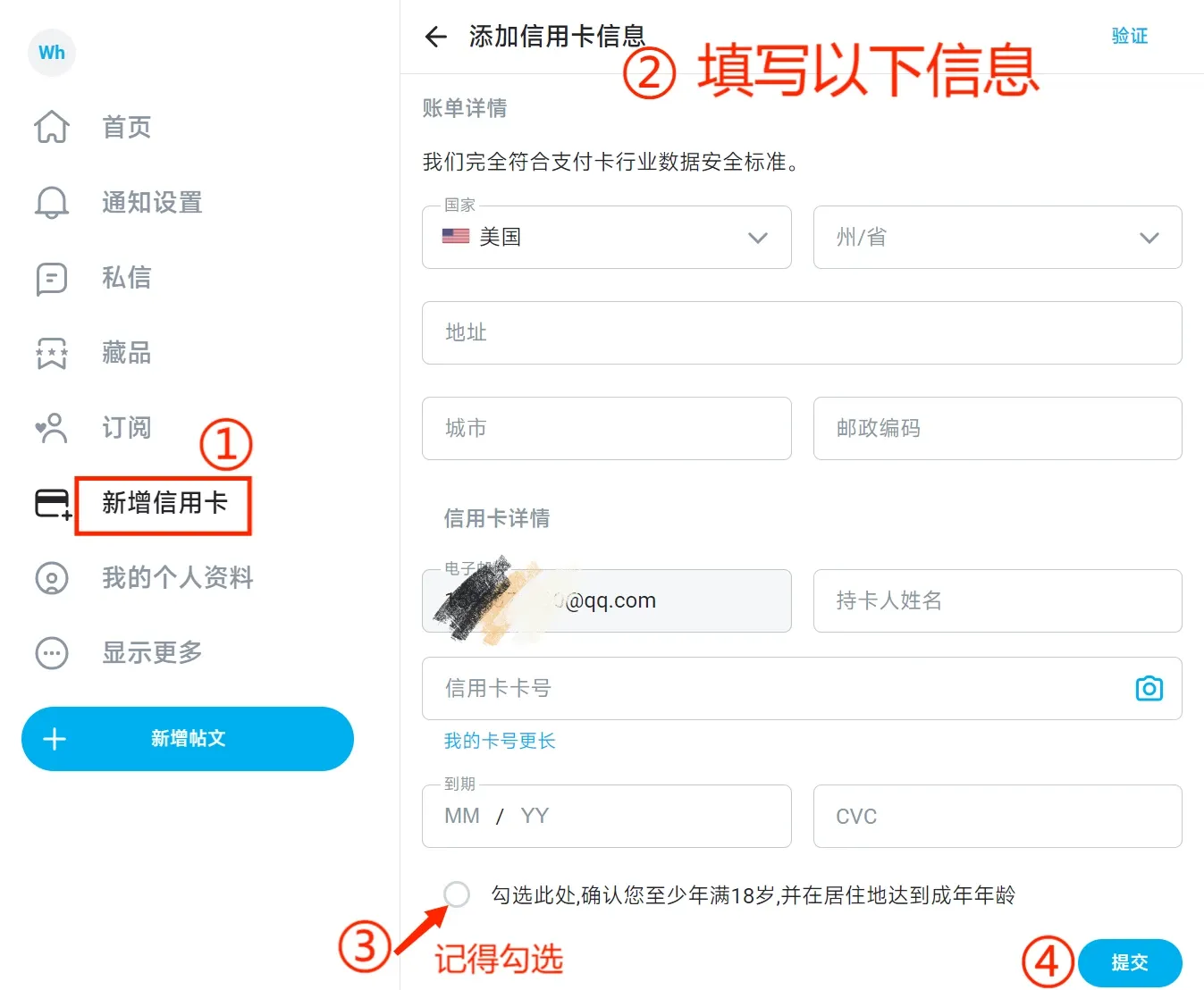 (2)下面是虚拟卡信息对应要填写到 OnlyFans 卡信息的位置,方便大家对照填写: